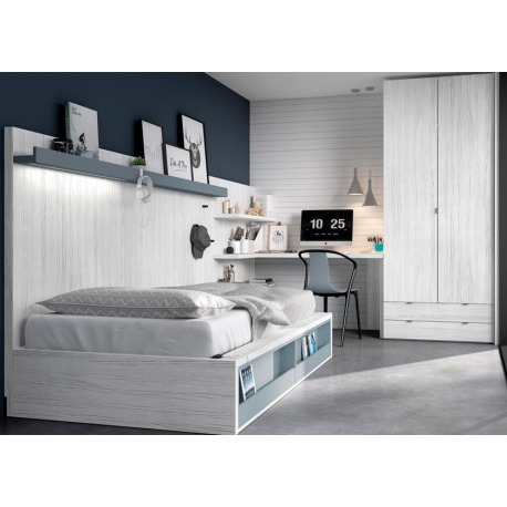 Más información Gestionar cookiesCama abatible con revistero. Completa habitación juvenil con armario y escritorio a la medida.