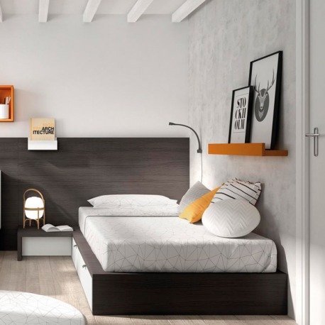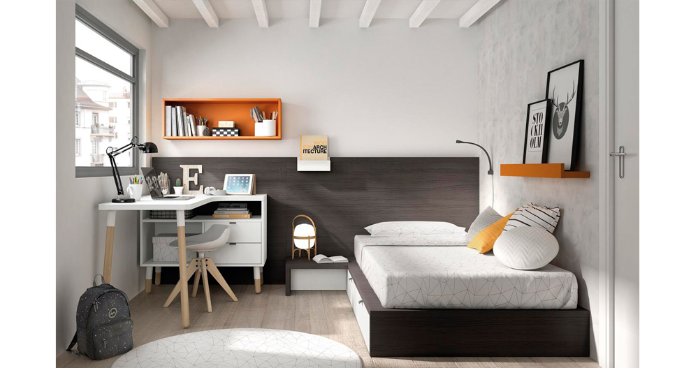Una cama juvenil con dos cajones debajo siempre es ideal: un mueble funcional y a su vez juvenil.
