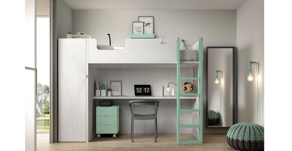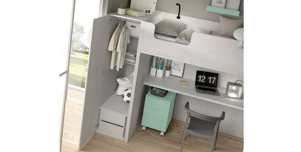 Más información Gestionar cookiesUn dormitorio pequeño también tiene infinidad de opciones: una cama alta juvenil, una posibilidad. ¿te gusta?