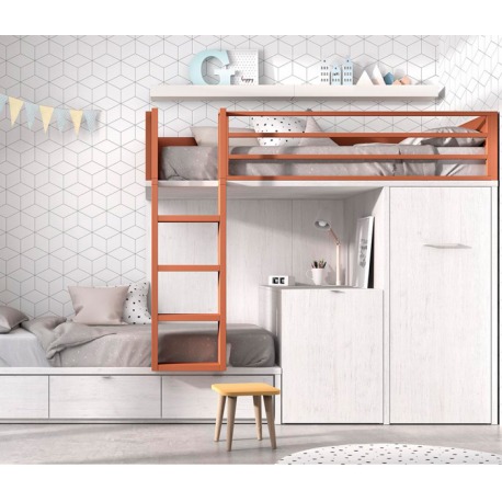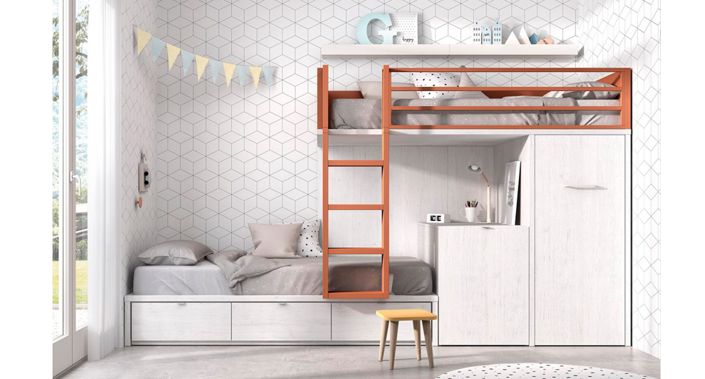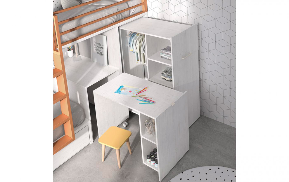Más información Gestionar cookiesUna litera con escritorio y armario extraíble muy funcional y atractiva para es@s herman@s que comparten habitación. Además, con tres cajones más en la parte inferior de la litera para guardarlo todo.