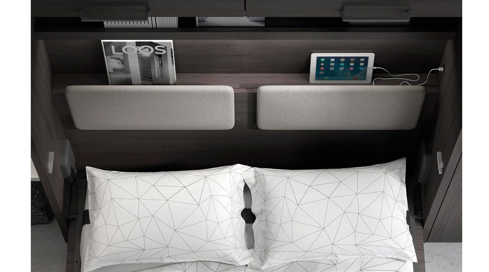 Una vez abres la cama abatible, como puedes ver, de forma opcional, se pueden utilizar unos respaldos que se pueden poner y quitar fácilmente.