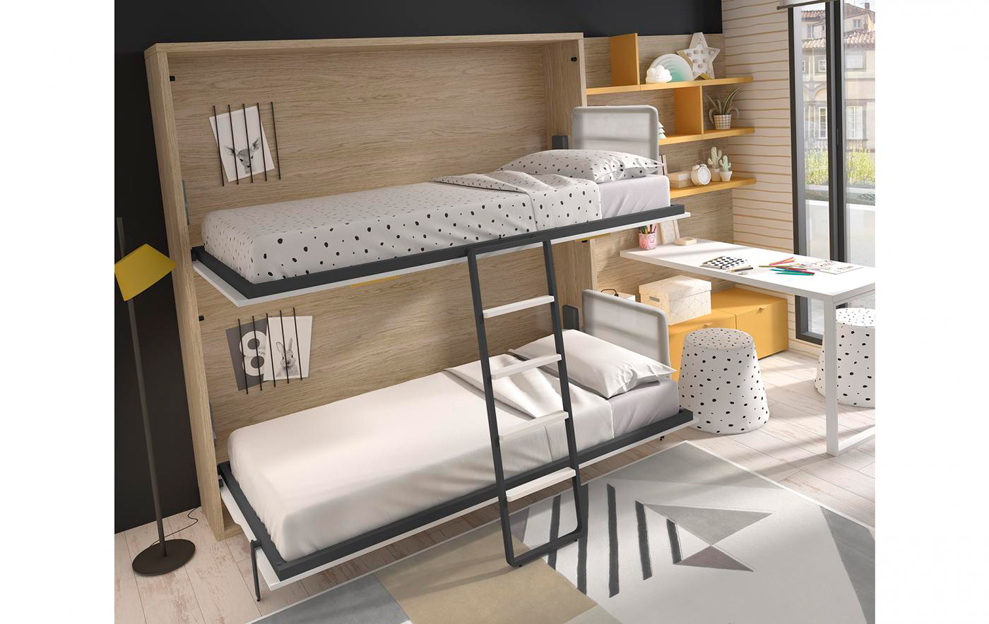 Un dormitorio juvenil con una litera abatible es una opción ideal para aprovechar mejor el espacio del dormitorio.