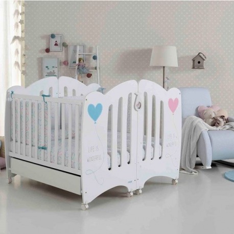 Novedoso diseño adaptado para el descanso de 2 bebés. Unidas o por separado, dos opciones de uso único en el mercado. Los niños permanecen juntos ocupando el mínimo espacio.